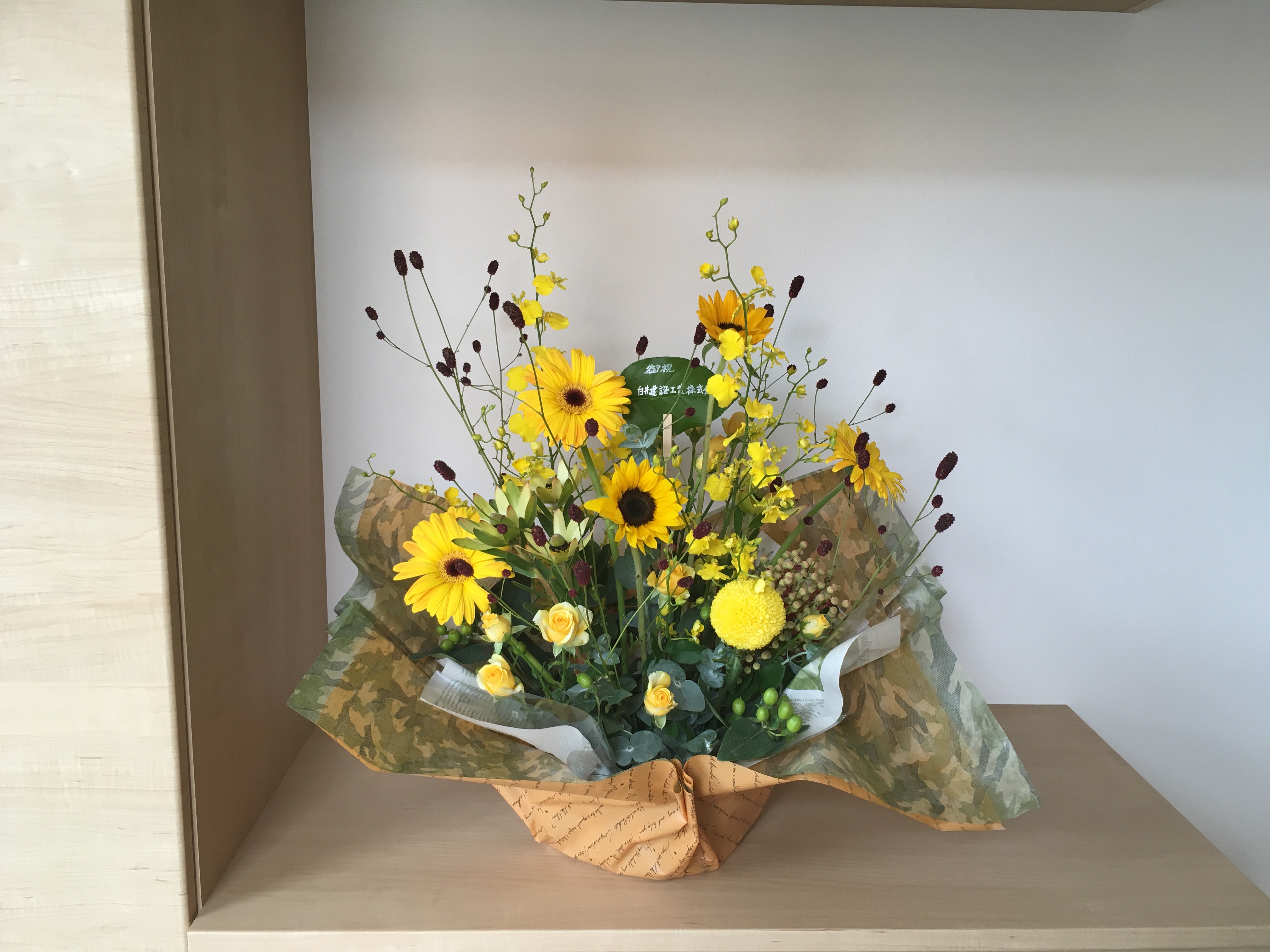 黄色は「光」のイメージに最も近い色で、生命の躍動感、上昇志向、希望、やる気、満足など前向きの期待感をイメージさせます。落ち込んだときは、気分を盛り上げてくれます。早速新築のお祝いに玄関に飾らせて頂きました。末永いお幸せを心より祈念いたします。